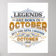 Poster Legends Are Born In October 1992 Womens Birthday C