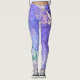 Purple Green Rose Floral Art Abstrait Leggings présentent des teintes de violet, lavande, lilas, rose, vert et blanc art abstrait avec un design floral mélangé avec des rayures et du texte cursif.