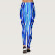 Light and dark blue, black, and white vertical painted stripes creates a beautiful and flattering pair of leggings.