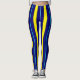 Des rayures jaunes gras et une rayure bleu clair sur un arrière - plan bleu marine foncé font ressortir ces leggings !