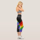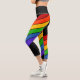 Ces leggings sont dotés d'un arc-en-ciel classique en bandes diagonales avec un bandeau noir solide.