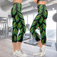 Ce Capri Leggings propose des feuilles lumineux vert néon sur l'art fractal noir. Leggings Capri modernes pour toute femme !