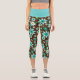 Fun capri leggings de retour motif qui présente des fleurs rétro mod aqua bleu et blanc sur arrière - plan marron. Le panneau de brassage est bleu aqua solide. N'oubliez pas de consulter les autres vêtements et accessoires de cette même collection de motifs.