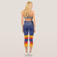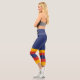 Three-color design in half solid and then with stripes. Horizontal lines in three colors for your sporty Capri leggings. Add your name on the high waist athleisure. This variant is the retro solid blue, yellow and red version.