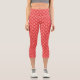 Dames Capri Leggings aux formes de squiggle rose réfléchissante sur une couleur de base de rouge.