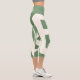 Green and white Capri Leggings with your initials in white. Oversized and intertwined. It looks a bit like graffiti, but it's still style. Also on the waist and more clear in the back.