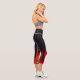 Pantalon serré noir avec un design de flammes au fond. Les flammes du feu sont rouges et la couleur du pantalon est noire. Ce qui donne une attraction aux couleurs.
