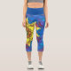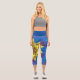 Leggings Capri Pignon psychédélique hippie Fleur Jaune et Bleu
