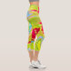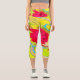 Leggings Capri Rose rouge Abstraite sur Yellow et Aqua Swirl