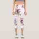 "Single Ready to Haunt", un dessin humoristique de leggings Capri pour femmes, avec une sorcière sur un balai tenant un crâne, avec un croissant de lune et des chauves-souris dans l'arrière - plan. Ce design ludique en fait un cadeau d'Halloween idéal pour une femme célibataire.
