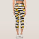 Leggings Capri Sunflowers with Black and White Horizontal Lines