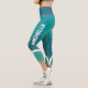 Ces leggings d'entraînement moderne présentent des teintes tendance de bleu et de bleu turquoise brillant avec nom personnalisable sur les deux côtés en blanc toutes les polices casquettes.