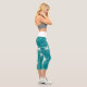 Leggings Capri Turquoise avec des fleurs transparentes blanches