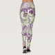 Ces jambières ont un design géométrique de cercles décorés de lignes et de cercles en points répétés en aubergine et vert.