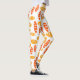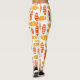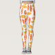 Ces leggings ont un motif répétitif d'ovales en orange rétro et jaune avec des ovales blancs éparpillés le tout sur un champ de blanc.