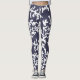 Impression graphique de récif de corail tropical leggings bleus et blancs. Bleu marine avec coraux sous-marins blancs, avec un look patiné moucheté. Légumineuses à imprimés exotiques pour les amateurs de plage et d'océan.