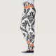 Motif damassé noir et blanc et rayures leggings. Un joli motif damassé noir et blanc rétro, une bande de corail et des bandes noires et blanches sur le dessus et le bas ornent cette paire cool de leggings.