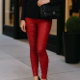 Leggings Crocodile de Faux texturé rouge