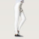Love the leggings. Wore them to my pump class. Didn’t have to pull up once. Very comfortable. I’m 5’3 and weight about 118. I ordered a size small. Fit perfect except the ankles are a bit loose. I would suggest changing the background on these from white to a darker color as they are a bit see through. The waist is above my belly button. Very flattering. My design turned out beautiful.
