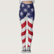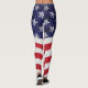 Ces leggings rouges, blancs et bleus présentent une représentation stylisée et créative du drapeau des Etats-Unis avec des étoiles blanches sur le bleu sur la partie supérieure des leggings et des rayures rouges et blanches inclinées sur chaque jambe - par katz_d_zynes
