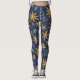 Leggings Elégant motif floral jaune sur bleu