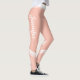 Ces leggings modernes rose pâle présentent un design floral blanc élégant sur les chevilles et les mollets et des bandes blanches sur la ceinture. Facile à personnaliser en ajoutant votre nom sur les deux côtés sur une police blanche de calligraphie.