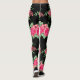 Leggings Elégante Fuchsia Rose Fleur Noir