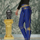 Un luxe noir et bleu avec paire or de leggings avec une bande noire et bleue avec chaînes or sur les jambes et la taille.
