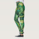 Leggings featuring a vibrant green tropical leaf pattern with a stained-glass effect. The design is bold and lively, paired with black sneakers.