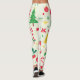 The image is a pattern of Christmas-themed illustrations on a cream background. The illustrations include Christmas trees of various sizes, ornaments in red, yellow, and green, candy canes, snowflakes, holly leaves and berries, poinsettias, and wrapped presents. The style is whimsical and childlike, with simple shapes and bright colors.