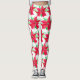 Poinsettia, rouge floral, aquarelle leggings de Noël. Fleurs rouges et vertes, festives, leggings de Noël.