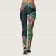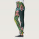Une paire unique de jambières d'entraînement ou de pantalon de yoga pour femmes avec des mandalas à fleurs rétro sur couleur vert foncé.