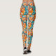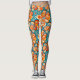 Leggings avec une illustration de fleurs rétro aux couleurs vintages, bleu et orange, donnant une ambiance rétro du milieu du siècle.