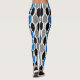 Ces jambières ont un design d'hexagones noirs, bleus et gris, collés ensemble sur un champ de blanc.