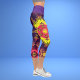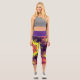 Ces leggings psychédéliques présentent des tons rose et jaune vif avec un violet profond dans un motif kaléidoscope asymétrique.
