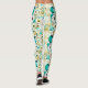 Leggings Joli Art folklorique Fleurs blanches et turquoise