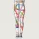 Ces leggings ont un design géométrique de lignes éparpillées dans les couleurs florales - les tons rose, orange, jaune, bleu et vert.