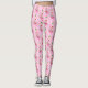 Flamands roses de Noël aux lampes à cordes et chapeau de Père Noël sur un arrière - plan rose aux flocons de neige rose pâle et aux palmiers décorés de manière festive. Montré ici sur les leggings féminins sur mesure. Vous pouvez facilement redimensionner le motif à votre préférence et sélectionner votre couleur arrière - plan préférée. C'est un mignon motif pour fêter Noël à l'ambiance tropicale !