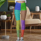 These bold multicolor leggings feature a modern knitting wool texture simulation in vibrant blue, brown, purple, red, and yellow rectangular blocks. The design visually mimics woven sweater fabric while staying lightweight, breathable, and stretch-comfortable for yoga, workouts, streetwear, or everyday lounging. This is a printed fabric simulation, not real wool. Soft, sculpting, and eye-catching—made for women who want standout athleisure with cozy style energy. Add instant color and movement to your wardrobe now.