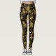 Leggings Noir et or feuilles tropicaux & fleurs motif