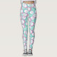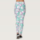 Ces leggings ont un motif d'ovales dispersés dans le turquoise et le violet avec des ovales blancs et des cercles avec des lignes à l'intérieur.