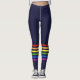 Ces leggings ont un style rétro avec des rayures arc-en-ciel classiques dressées contre un arrière - plan bleu marine. Les bandes horizontales tombent juste sous le genou. Un petit coeur blanc, qui apparaît à l'arrière des leggings est prêt à être personnalisé avec vos propres initiales monogrammées.