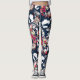 Leggings Rouge, fleurs blanches sur bleu.