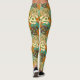 Ces leggings ont une conception moderne du milieu du siècle d'un adaptateur de disque qui se superpose partout dans le tan, blanc cassé, marron, orange, turquoise, bleu et vert.