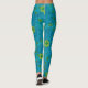 Leggings dans un vintage William Morris, Art Nouveau, empreinte damassée marigold de feuilles et de fleurs, numériquement rehaussées et colorées, dans les tons turquoise, aqua, et bleu cobalt, accentuées de jaune et vert citron vert, sur un arrière - plan bleu marine foncé