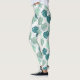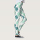 Leggings with diagonal turquoise and grey tropic monstera leaf pattern