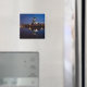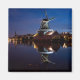 Souvenir photo magnet with the windmill 'Salamander' with reflection in the water of the Vliet river with lights on at the beginning of the night in the city of Leidschendam in the Netherlands.