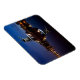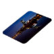 Rectangular photo magnet with the windmill 'Salamander' with reflection in the water of the Vliet river with lights on at the beginning of the night in the city of Leidschendam in the Netherlands.