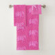 L'ensemble de serviette dans un graphique numérique de médias mélangés d'un éléphant contre un arabesque a couvert de tuiles l'arrière - plan - motif de Paisley aux nuances de profondément pour allumer le rose fuchsia sur un fond pâle de rose de glace