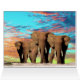 Voici trois éléphants qui se promènent sur un joli lever du soleil matinal